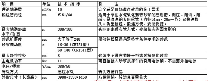 二、水泥乳化瀝青砂漿泵主要技術參數